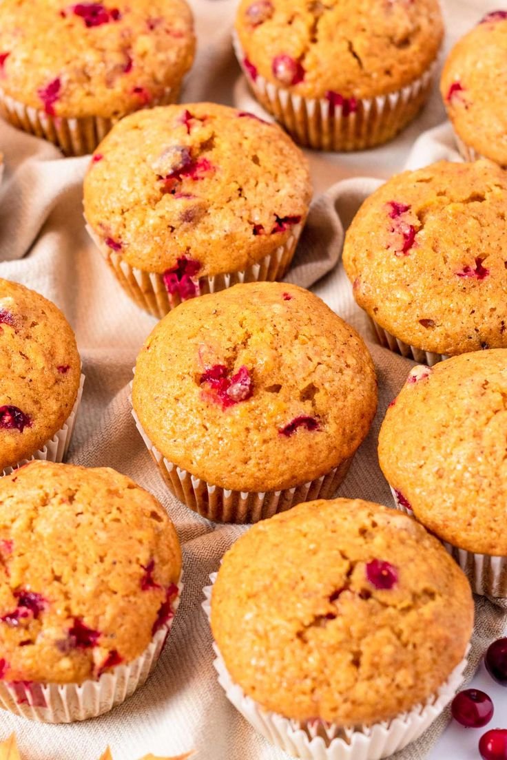 Soft, moist pumpkin muffins flavored with warm fall spices and studded with juicy cranberries. Perfect for breakfast, tea time, or a light dessert. Not overly sweet and beautifully aromatic.
