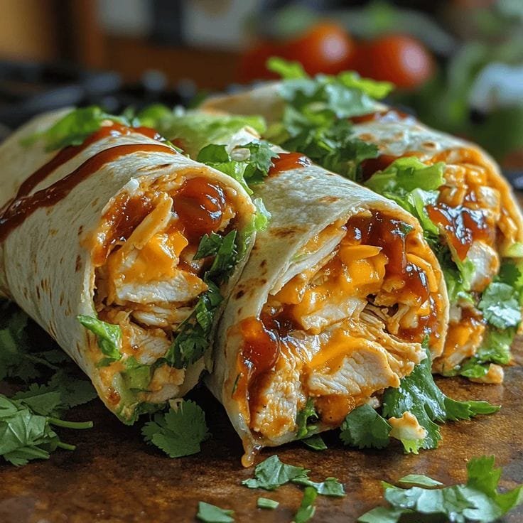 These wraps combine sweet and smoky BBQ chicken with cool ranch, fresh vegetables, and shredded cheese — all rolled into a soft tortilla for a satisfying bite every time. They’re perfect for busy weeknights, packed lunches, or casual dinners.