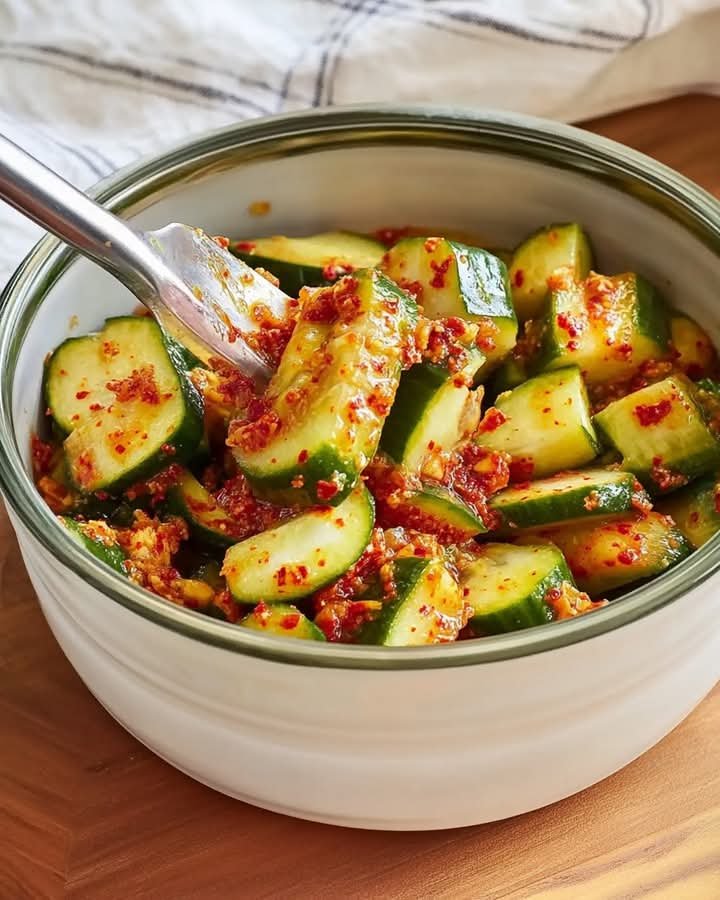Here’s a full detailed recipe for Quick Cucumber Kimchi (Oi Kimchi), including a description, nutritional information, prep time, and a Q&A section to help with common questions.