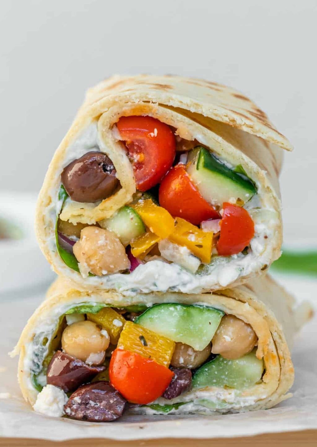 This healthy Greek Wrap is fresh and filled with veggies, chickpeas and a creamy tzatziki sauce. It will be your new favourite lunch!This greek wrap is also great for meal prep too. Make a batch of the Greek salad then assemble your wrap on the day you’ll be eating it for a quick lunch.