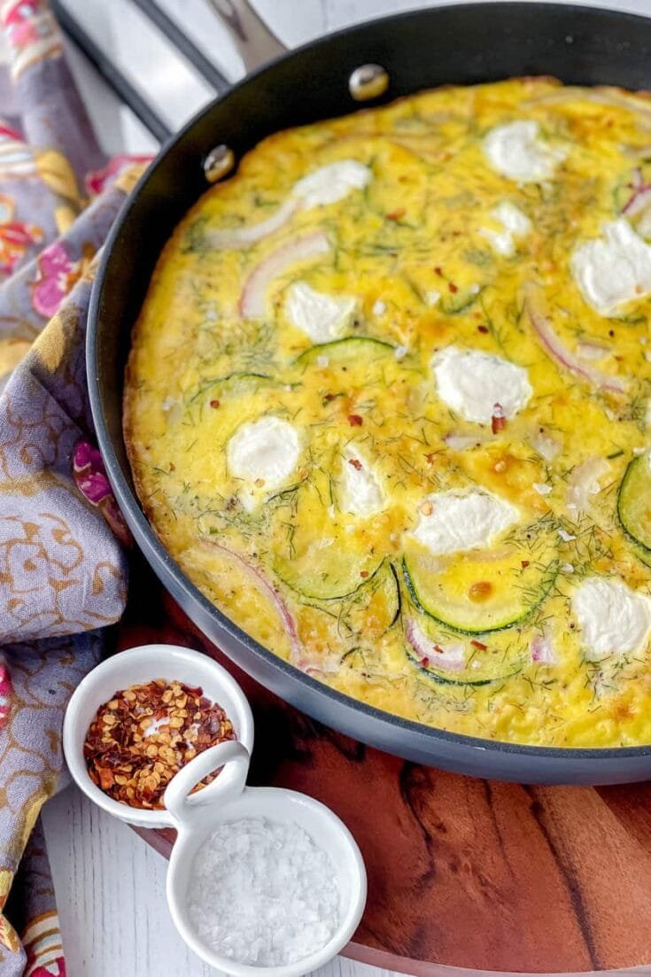 This Mediterranean Zucchini Frittata is incredibly soft, creamy, and delicious. Ready in 30 minutes or less, it’s filled with vegetables, ricotta cheese, and seasoning like dill. So simple to make, it’s become a new favorite for brunch or a light dinner.