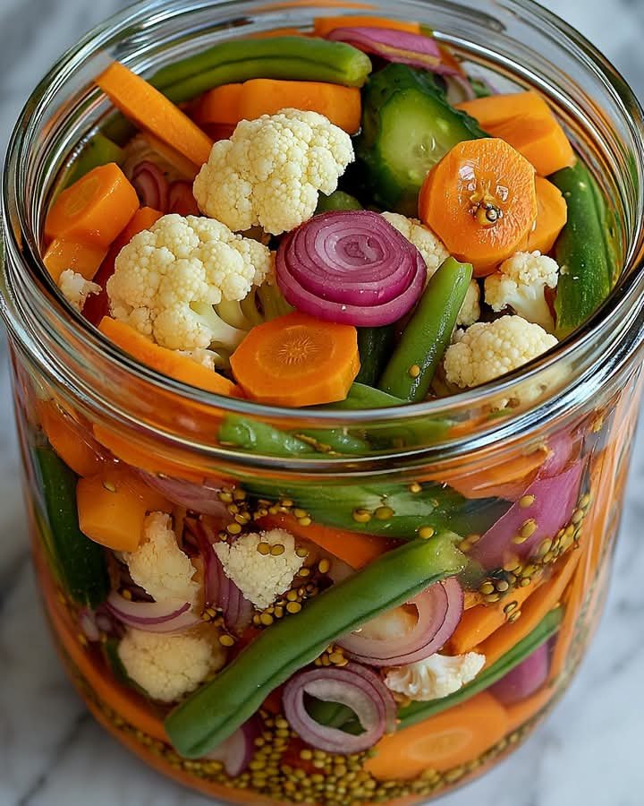 Quick pickled vegetables are crunchy, tangy, and slightly sweet — a versatile condiment that adds zing to sandwiches, tacos, grain bowls, and salads. Unlike traditional fermented pickles, these are made with vinegar and are ready in just a few hours. You can use almost any fresh vegetable, making it a flexible and waste-reducing recipe.