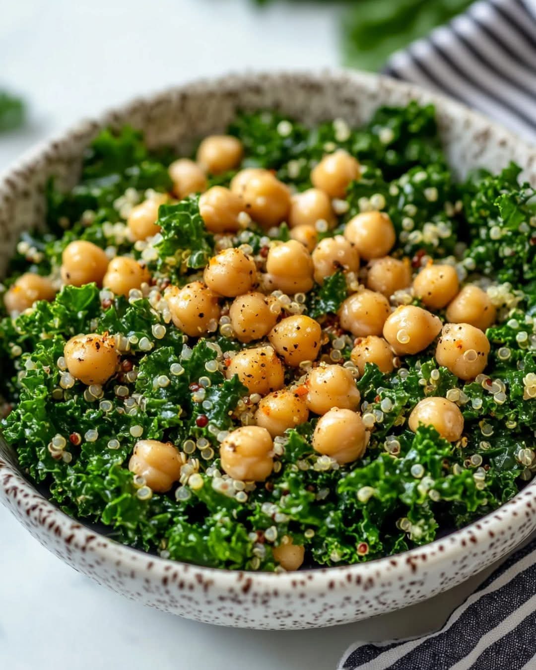 5. Make it ahead: Prepare the quinoa, kale, and chickpeas ahead of time and assemble the bowls just before serving.