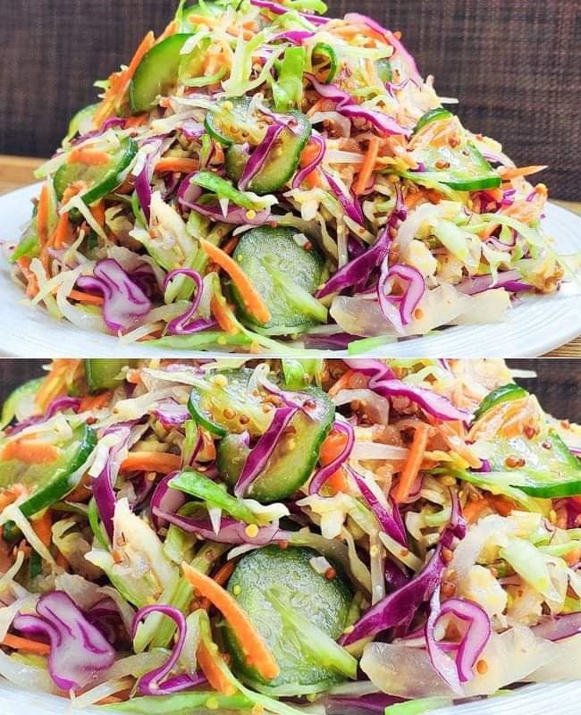 This refreshing and nutritious cabbage and cucumber salad is a perfect addition to your dinner routine, especially if you’re looking to lose belly fat. Packed with fiber, vitamins, and healthy fats, this salad is not only delicious but also incredibly healthy. The combination of fresh vegetables, nuts, and a tangy dressing makes it a delightful meal that you’ll enjoy every day.