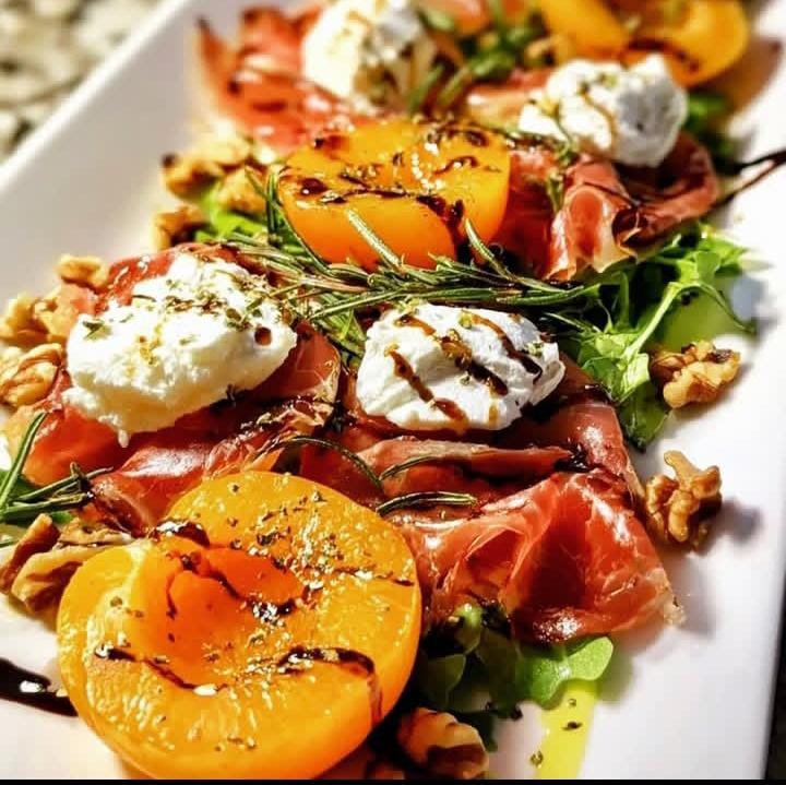 This Roasted Apricot Salad with Fragrant Herbs is a sweet-savory summer-style salad combining caramelized roasted apricots, fresh leafy greens, crunchy nuts, creamy cheese, and aromatic herbs like mint and basil. The roasting deepens the natural sweetness of the apricots, while a light citrus-honey dressing ties everything together. It’s elegant enough for entertaining but simple enough for a weekday meal.