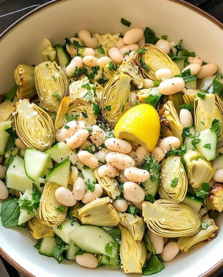 This Roasted Artichoke White Bean Salad is a hearty, protein-rich dish featuring crispy roasted artichokes, creamy white beans, and a zesty lemon-garlic dressing. It’s packed with fiber, plant-based protein, and antioxidants, making it a satisfying meal on its own or a great side dish. This salad is perfect for meal prep, as the flavors develop even more when left to marinate.