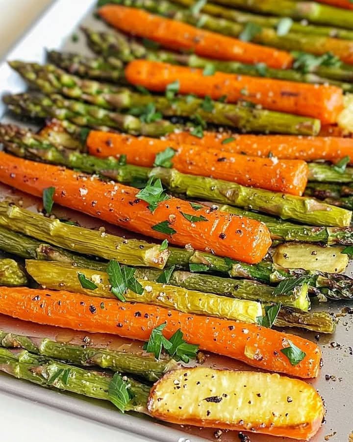 Roasted asparagus and carrots is a simple, healthy, and colorful side dish that pairs well with nearly any main course. The vegetables caramelize in the oven, bringing out their natural sweetness, while a touch of olive oil, garlic, and herbs enhances their flavor. This dish is vegan, gluten-free, and perfect for weeknights or holiday meals.