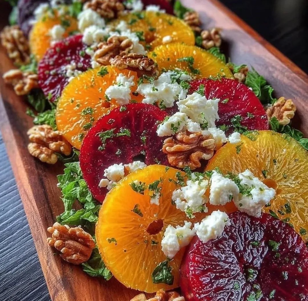 This vibrant Mediterranean salad combines earthy roasted beets, bright citrus segments, and salty feta crumble, finished with a silky honey-orange vinaigrette.Inspired by Greek and Levantine coastal flavors, it’s refreshing yet grounding — perfect as a starter, light lunch, or elegant side dish.