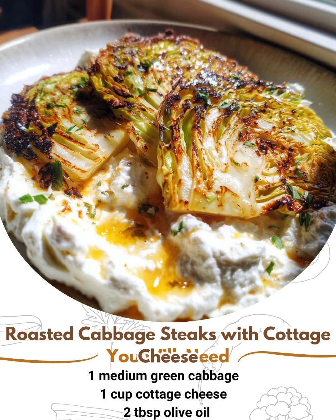 This dish transforms humble cabbage into a stunning, hearty vegetarian entrée. Thick cabbage steaks are roasted until golden and slightly caramelized, giving them a deep, nutty flavor. They’re served with creamy whipped cottage cheese that adds a luscious, tangy contrast, and finished with a drizzle of hot honey for a sweet-spicy kick. It’s simple, elegant, and perfect as a side or main for plant-forward meals.