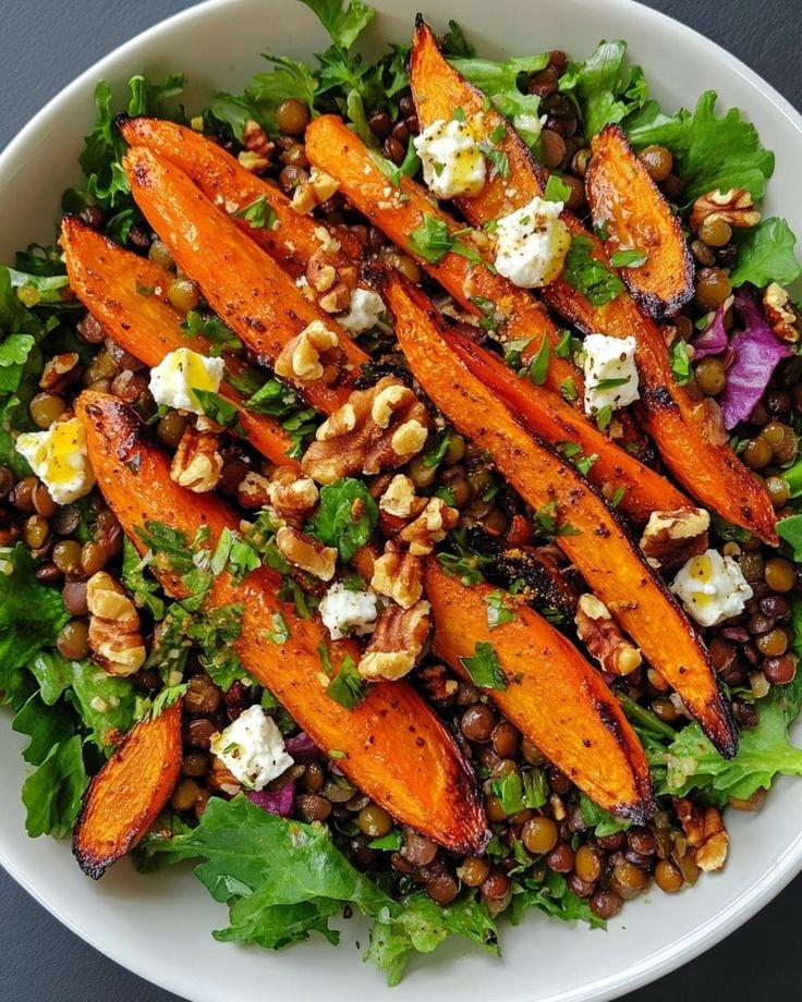 This roasted carrot and lentil salad is warm, nourishing, and full of Mediterranean-inspired flavors. Sweet caramelized carrots pair perfectly with protein-rich lentils, fresh herbs, and a tangy honey Dijon dressing. It’s naturally gluten-free, filling, and works equally well as a main or elegant side dish.