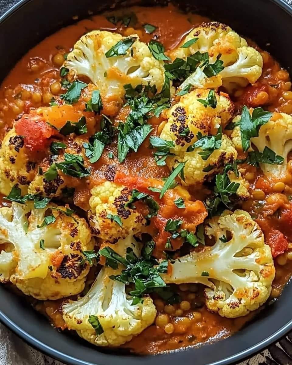 Indulge in a hearty and nutritious vegetarian dish that combines the tender sweetness of roasted cauliflower, the rich creaminess of coconut tomato sauce, and the nutty earthiness of lentils. This Roasted Cauliflower in Coconut Tomato Sauce with Lentils is a perfect blend of flavors and textures, making it an excellent option for a healthy and satisfying meal.
