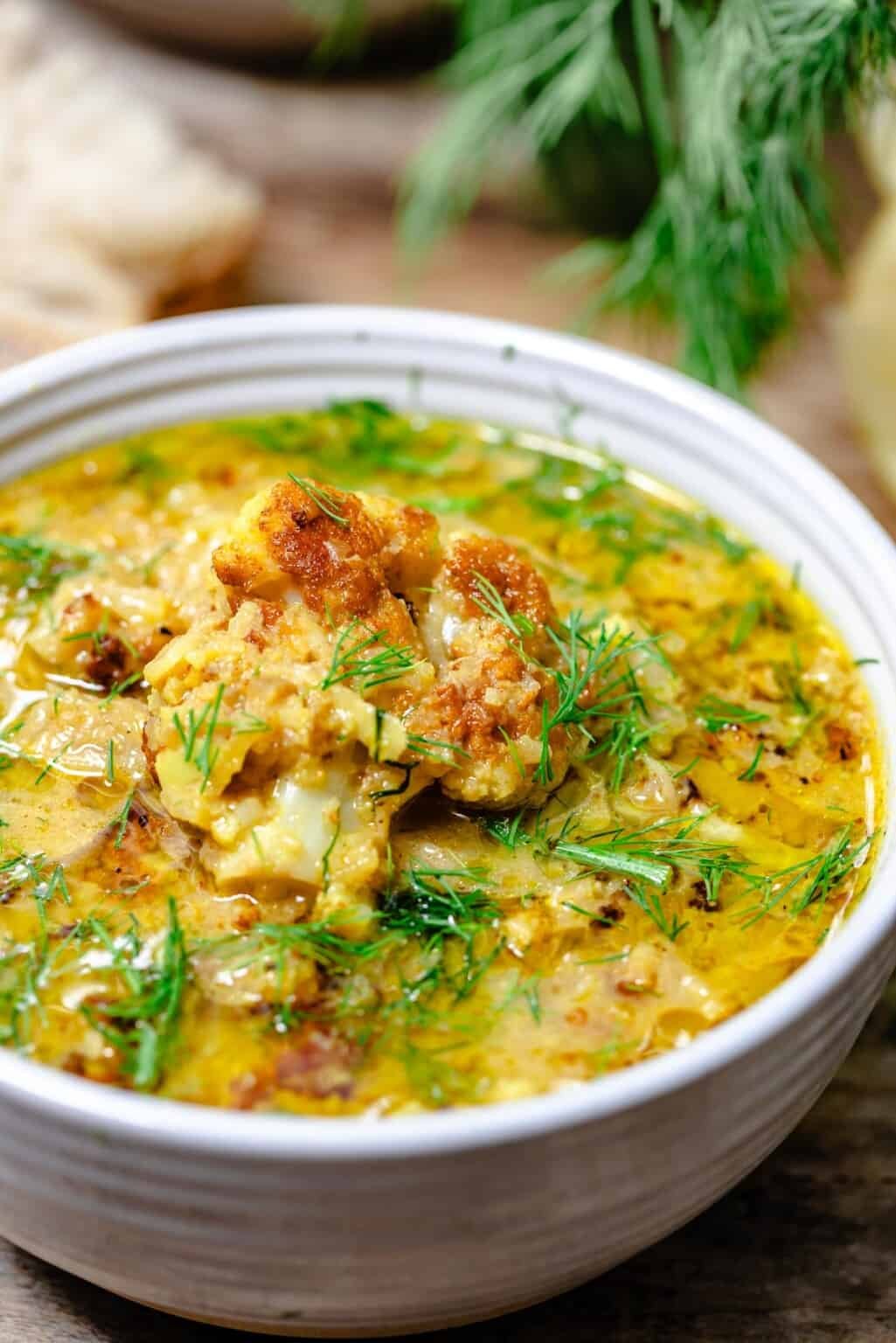 This cauliflower soup is boldly flavored with warming Mediterranean spices like cumin, turmeric, and paprika. Made with whole milk, it’s nice and creamy but not heavy. Make this light, fresh, and flavorful take on roasted cauliflower soup for a cozy night in.
