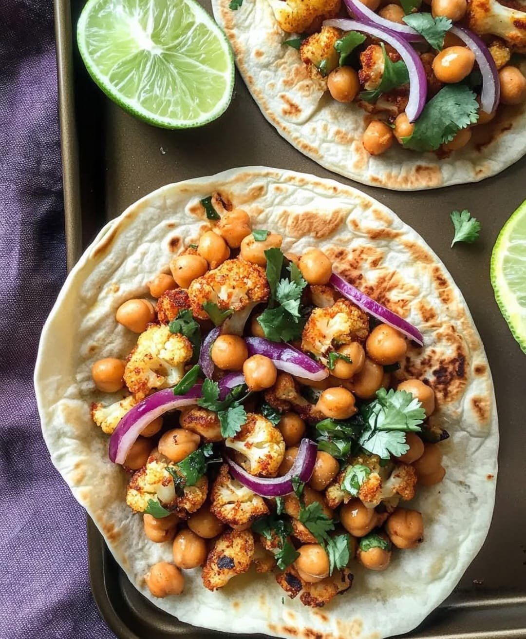 This Roasted Chickpea and Cauliflower Wrap is a flavorful, healthy, and satisfying meal. The crispy roasted chickpeas and cauliflower provide a hearty base, while the chili lime yogurt adds a creamy, tangy, and slightly spicy kick. Wrapped in a soft tortilla with fresh greens and crunchy vegetables, this dish is perfect for a quick lunch, dinner, or meal prep.