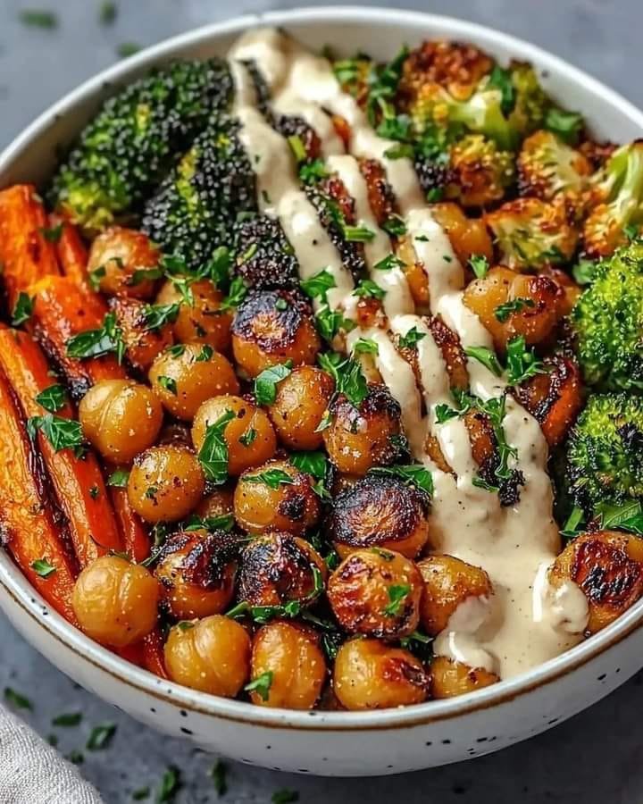 Here’s a nourishing and flavor-packed plant-based dish: the Roasted Chickpea & Veggie Bowl with Tahini Drizzle — a vibrant, high-fiber, protein-rich meal that’s perfect for lunch, dinner, or meal prep.