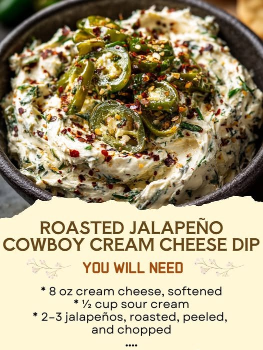 Roasted Jalapeño Cowboy Cream Cheese Dip is creamy, bold, and full of flavor with just the right amount of heat. Roasting the peppers adds depth, while Dijon mustard, herbs, and spices create balance. Whether you serve it cold, baked, or loaded with toppings, this dip is easy to customize and perfect for sharing. Once you make it, it will likely become one of your go to appetizers for gatherings and casual nights at home.