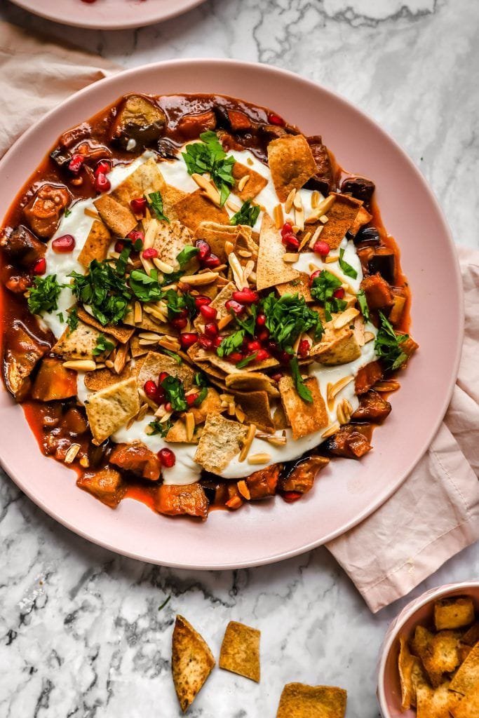 A: Substitute whipped feta with a creamy cashew or tofu spread, and ensure pomegranate molasses is vegan.