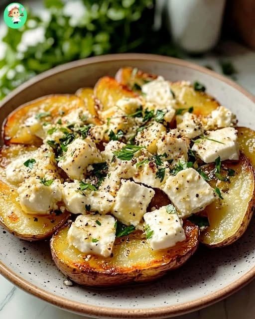 Carefully transfer the roasted potatoes to a serving platter. Place the baked feta on top or crumble it over the potatoes. Garnish with fresh parsley or dill if desired.