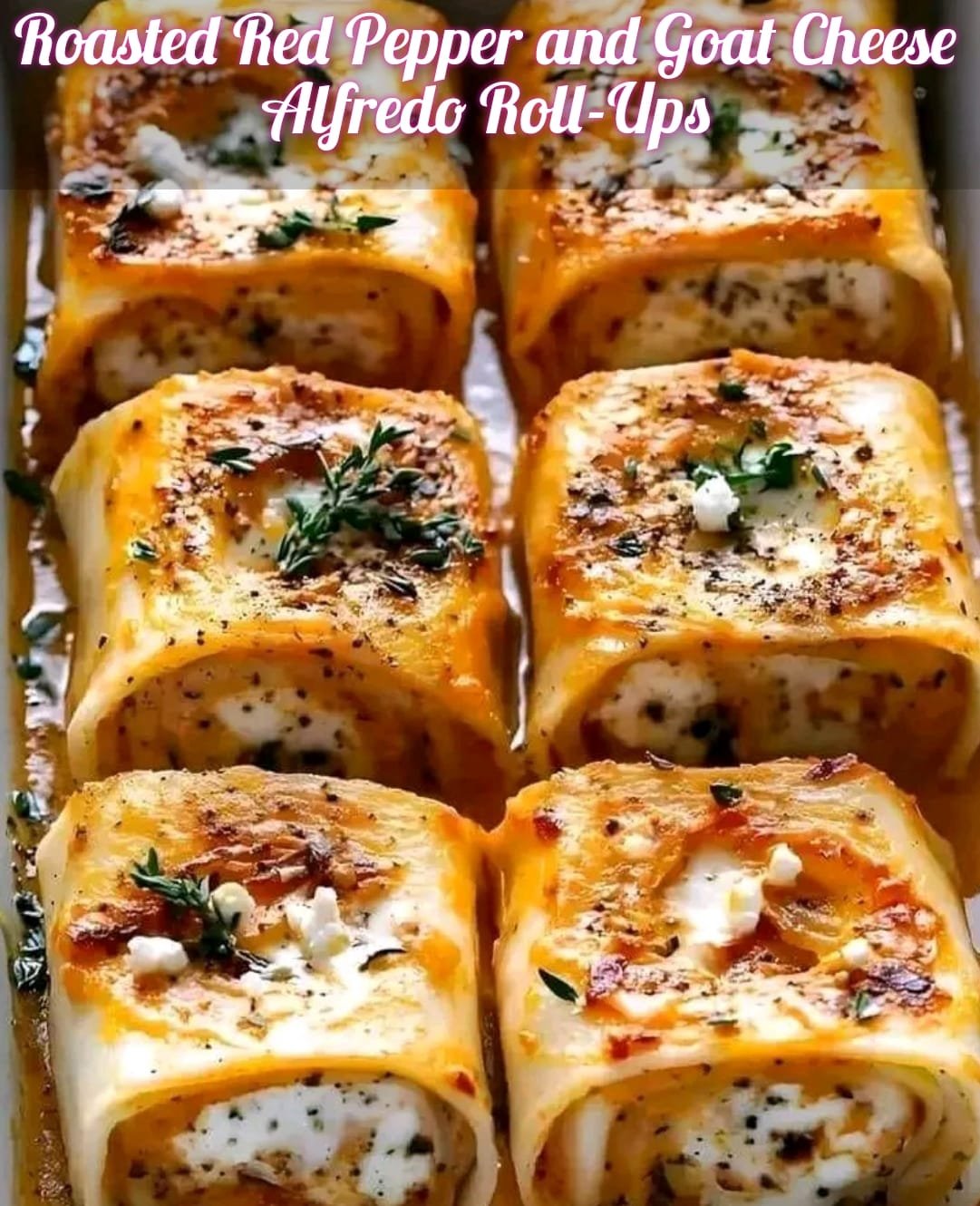 These Roasted Red Pepper and Goat Cheese Alfredo Roll-Ups are a Mediterranean-inspired comfort food delight!