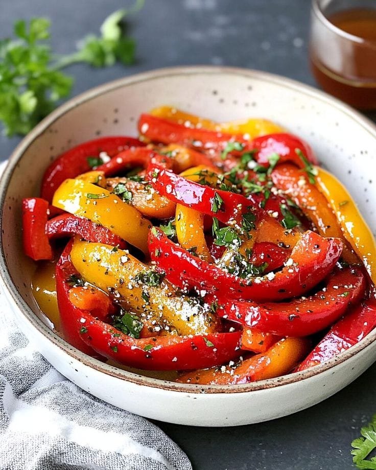 Best served after resting: Let it sit for 15–30 minutes so the peppers absorb the dressing.