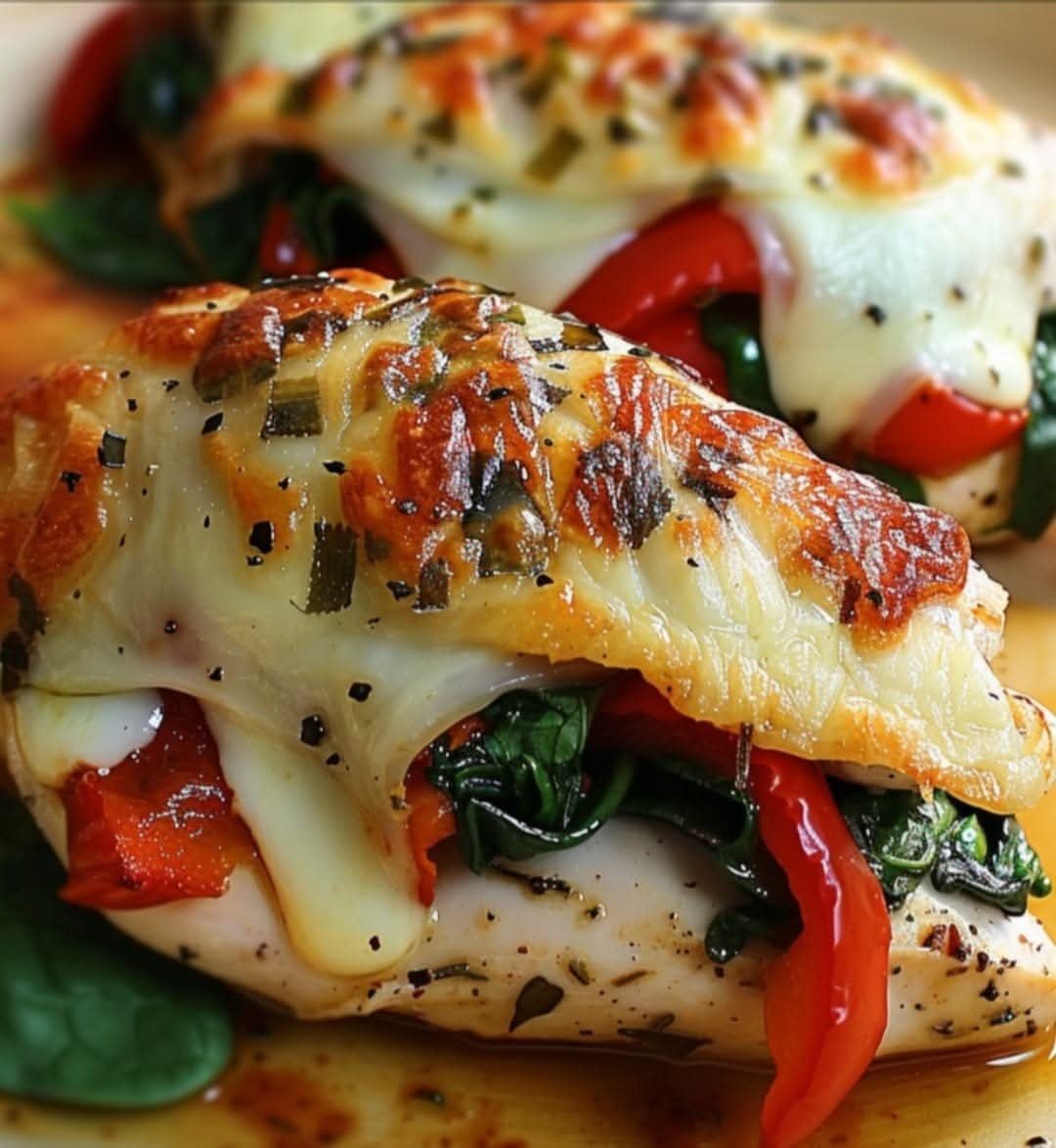 Roasted Red Pepper Spinach and Mozzarella Stuffed Chicken