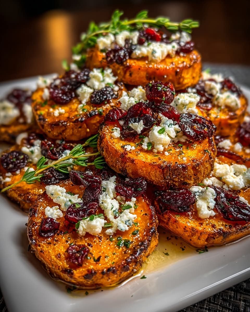 Roasted Sweet Potato Rounds with Honey & Cranberries