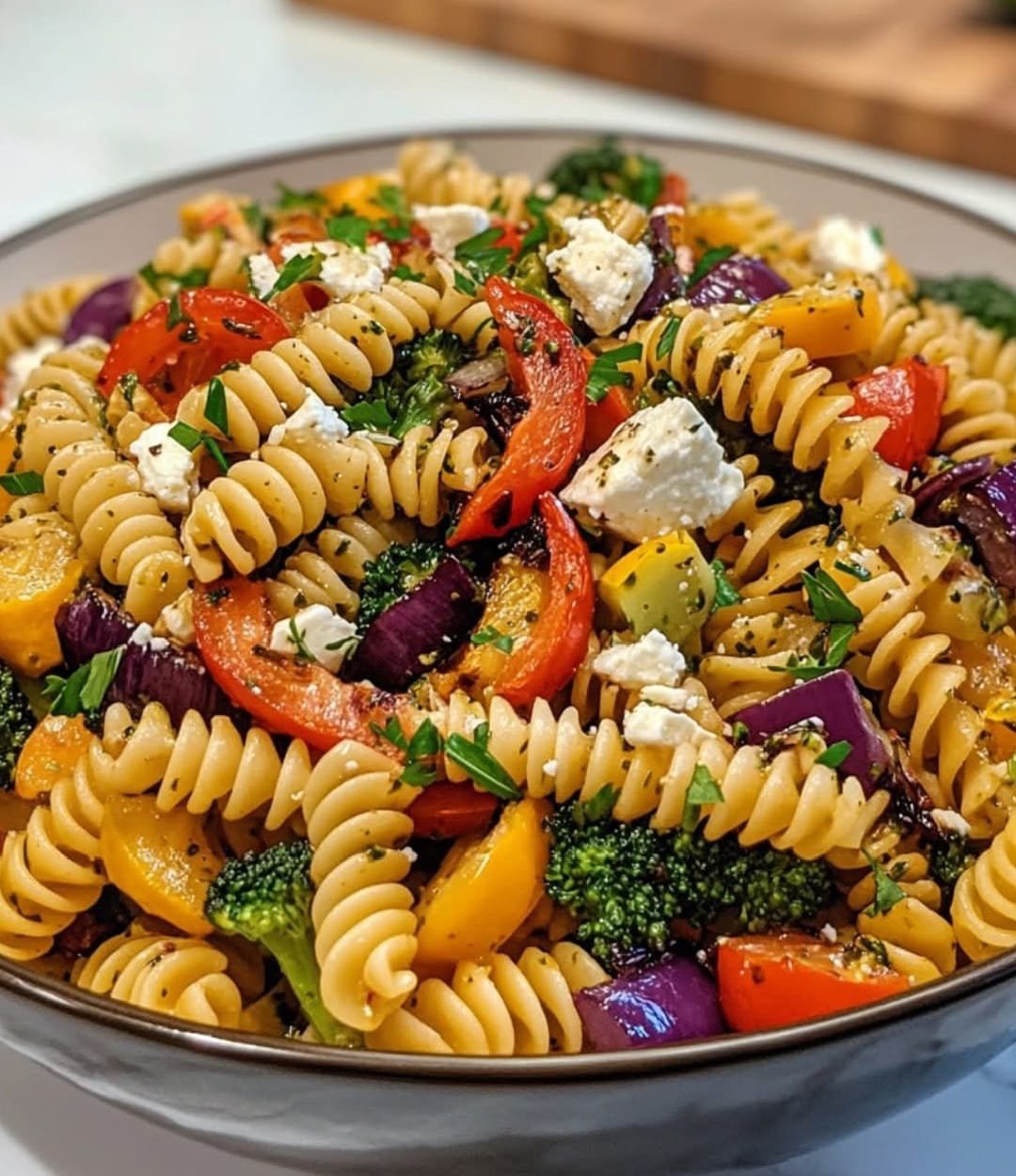 This Roasted Vegetable Mediterranean Pasta Salad is a vibrant, healthy, and flavorful dish packed with roasted vegetables, whole grain pasta, and Mediterranean ingredients like olives, feta, and a zesty lemon-oregano dressing. It’s perfect for a light lunch, a side dish, or even a hearty dinner. The combination of roasted veggies and fresh ingredients makes it both nutritious and satisfying.