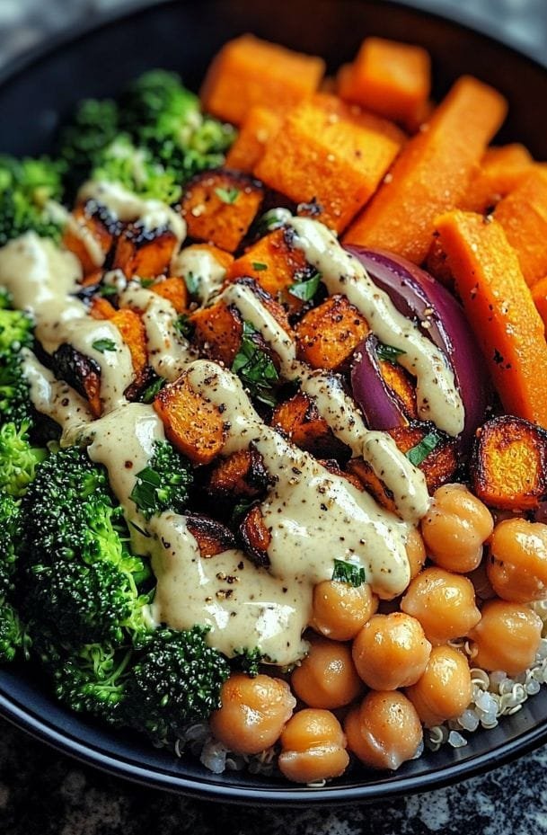 This Mediterranean-inspired bowl is a delicious combination of caramelized roasted zucchini, crispy spiced chickpeas, and fluffy grains, all brought together with a cool, creamy mint yogurt dressing. It’s hearty enough to be a main course and light enough for a warm day. Perfect for meal prep or a quick wholesome dinner!