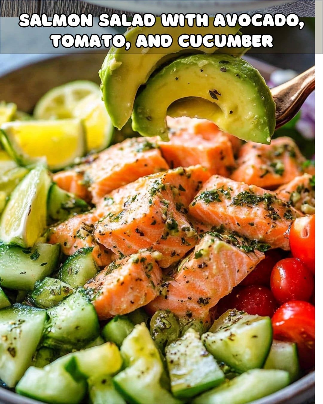 Fresh and Flavorful Salmon Salad with Avocado, Tomato, and Cucumber