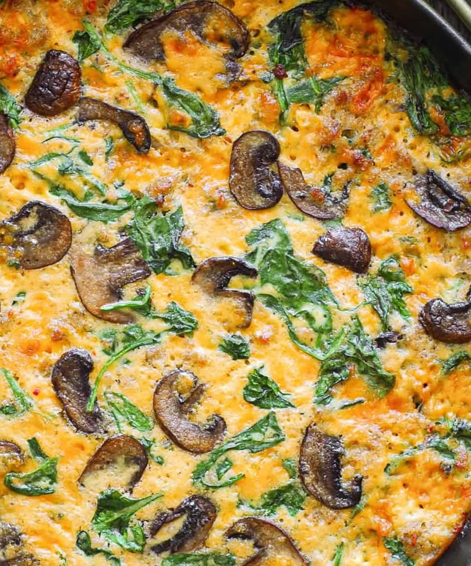 A hearty and flavorful frittata made with savory sausage, sauteed spinach, mushrooms, and eggs. It’s an easy one-pan dish perfect for meal prep or a quick meal option. Perfect for breakfast or dinner! This dish is gluten-free, low-carb, keto-friendly, and protein-rich.