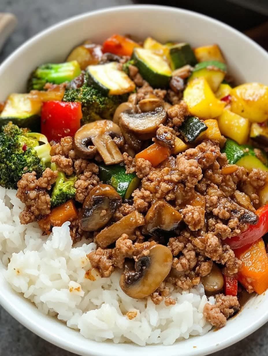 This Savory Ground Turkey & Roasted Veggie Rice Bowl is a wholesome, protein-packed meal that’s perfect for a quick and healthy lunch or dinner. Juicy, seasoned ground turkey pairs beautifully with roasted vegetables and fluffy rice, creating a balanced and satisfying dish. It’s easy to prepare, full of flavor, and great for meal prep!