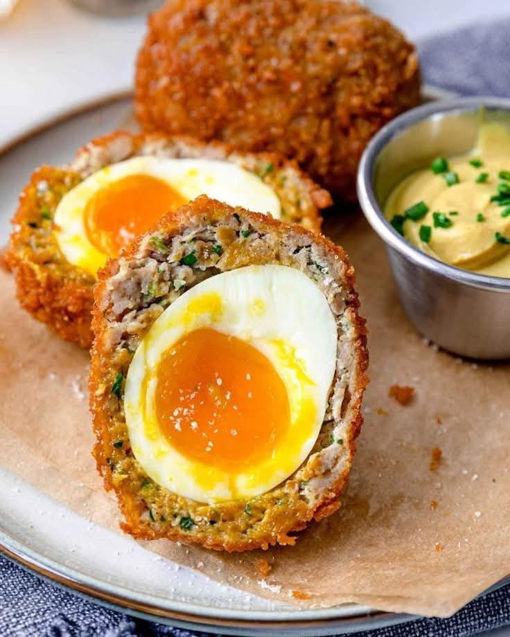 Scotch Eggs are a classic British snack made by wrapping boiled eggs in seasoned sausage meat, coating them in breadcrumbs, and frying or baking until crispy. Perfect for picnics, brunches, or appetizers.