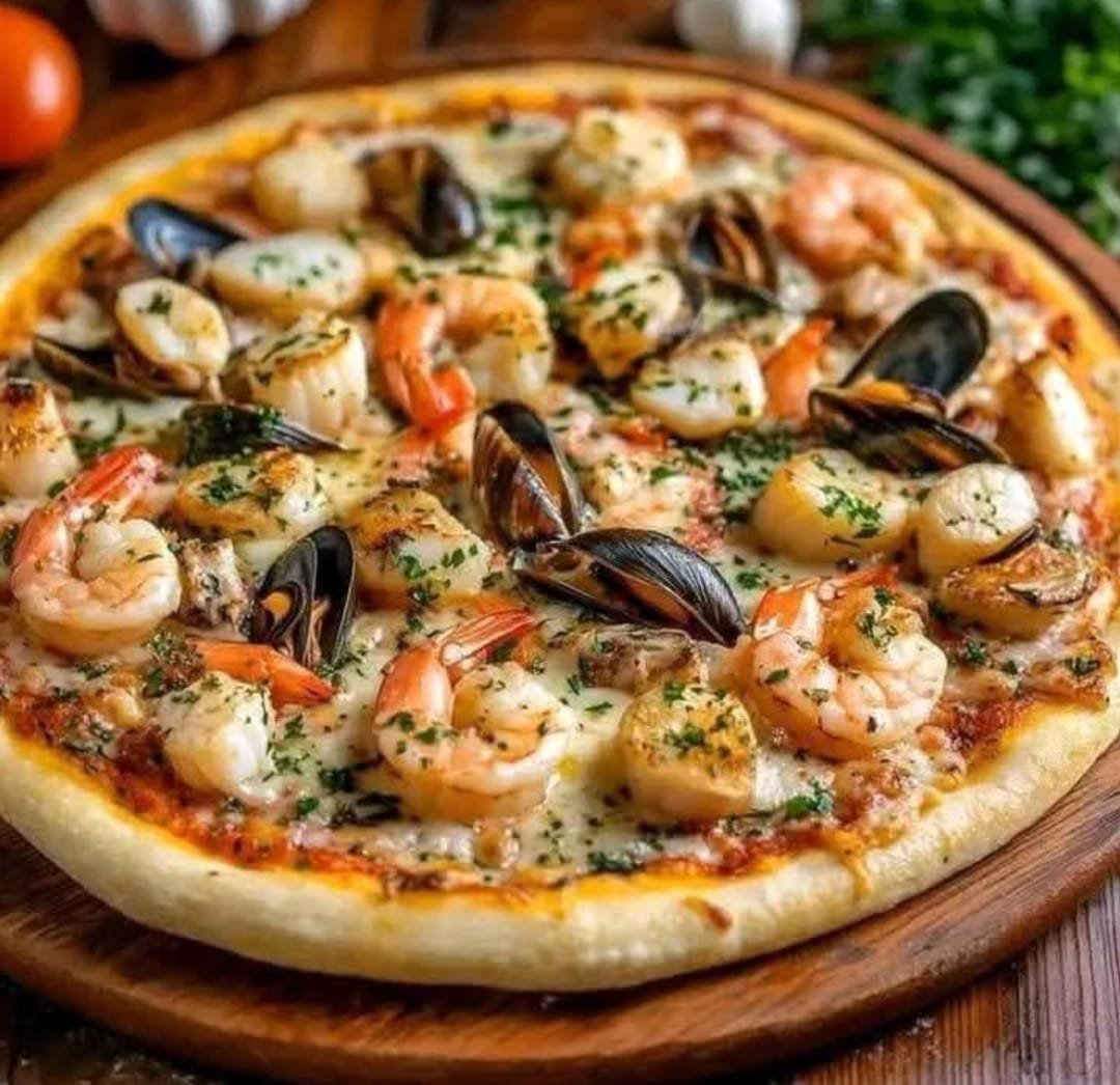 Seafood pizza is a luxurious and flavorful variation of traditional pizza, topped with a medley of seafood like shrimp, calamari, mussels, and sometimes crab or scallops. It pairs beautifully with garlic, herbs, and a creamy or tomato-based sauce on a crispy thin crust. Perfect for seafood lovers and an impressive dish for special dinners or casual get-togethers.