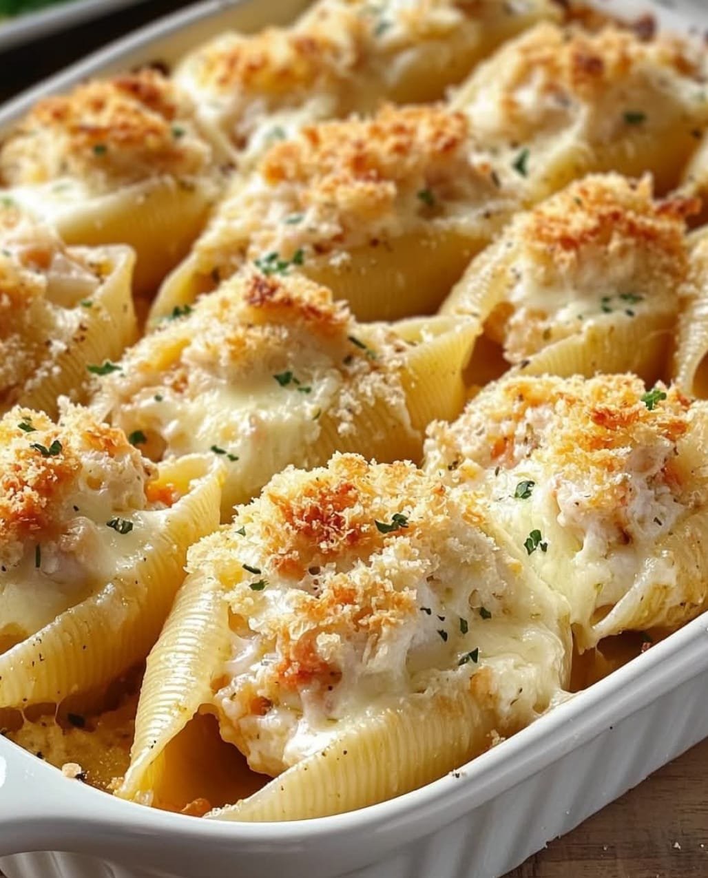 These Seafood-Stuffed Shells are a rich and indulgent dish, featuring tender pasta shells filled with a creamy mixture of shrimp, crab, and ricotta cheese, then baked in a garlicky Alfredo sauce. Perfect for special occasions or a cozy dinner, this dish is packed with seafood flavors and a luscious texture.