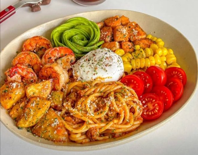 A hearty, high-protein bowl featuring tender shrimp, flaky salmon (optional), al dente pasta, fresh vegetables, and a bright lemon-garlic sauce. It’s nutrient-dense, delicious, and perfect for meal-prep or weeknight dinners.