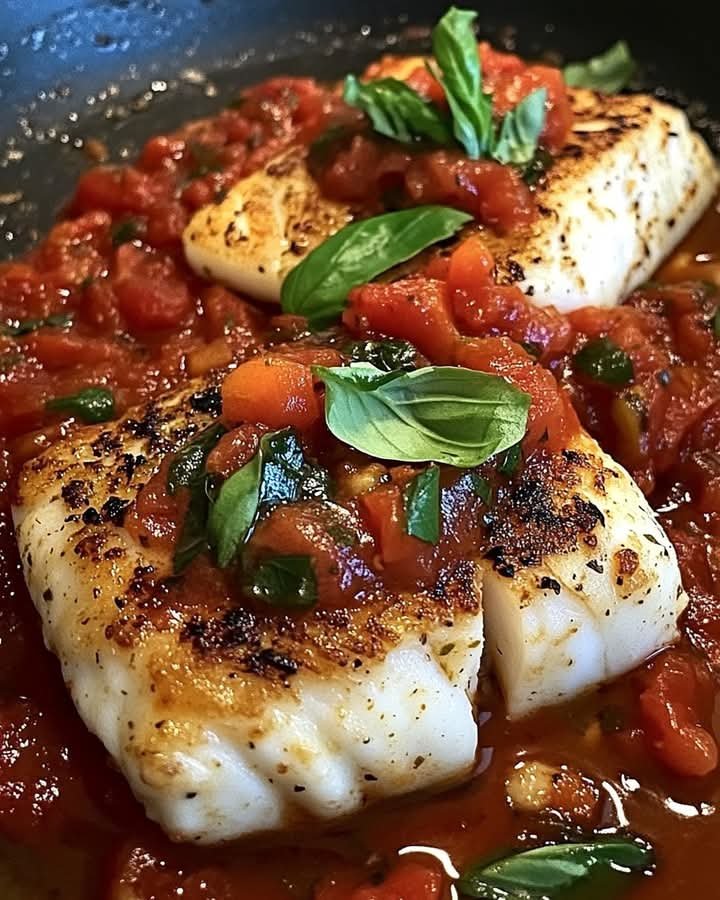 This recipe features pan-seared cod fillets nestled in a rich, flavorful tomato basil sauce. The cod is lightly seasoned and seared to golden perfection, while the sauce is made with fresh tomatoes, garlic, onions, and fragrant basil. It’s a light yet satisfying dish perfect for weeknight dinners or special occasions.
