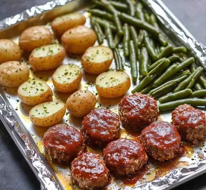 This Sheet Pan Mini Meatloaf and Roasted Potatoes recipe combines flavorful mini meatloaves and seasoned vegetables, all baked together on one pan. The potatoes and green beans (or broccoli) roast alongside the meatloaves for a simple, balanced meal with minimal cleanup. Perfect for an easy weeknight dinner!
