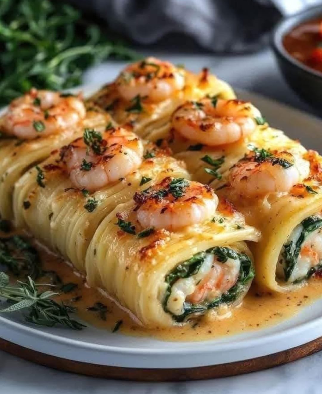 Shrimp and Spinach Stuffed Pasta Rolls Recipe