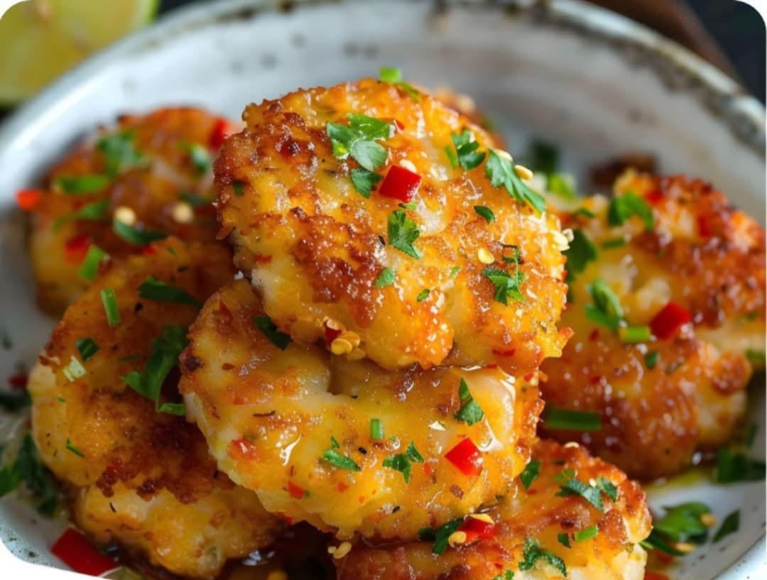 Crispy pan-seared patties filled with succulent shrimp, spices, and herbs.