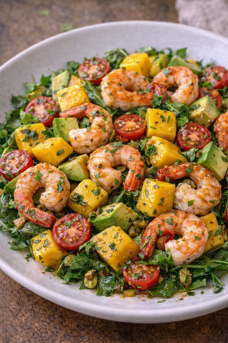 A fresh, juicy, non-spicy salad with sweet mango, creamy avocado and tender shrimp—perfect for lunch or a light dinner.