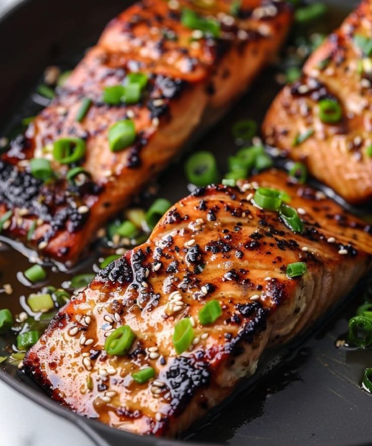 Plate salmon with remaining glaze spooned over top. Garnish with sesame seeds and green onions. Serve with jasmine rice, quinoa, or steamed greens.