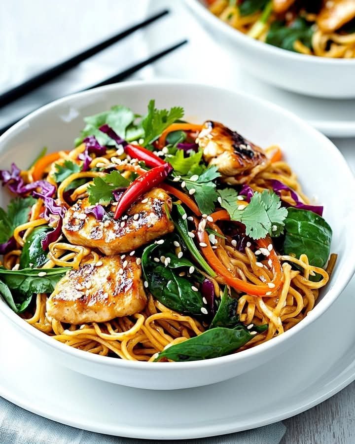 Singapore Chicken Noodles are a delicious stir-fried noodle dish inspired by Southeast Asian flavors, combining tender chicken, curry-spiced vermicelli (rice noodles), colorful vegetables, and a savory soy-based sauce. Though not native to Singapore (it’s more popular in Western Chinese cuisine), it reflects the multicultural influences of the region.