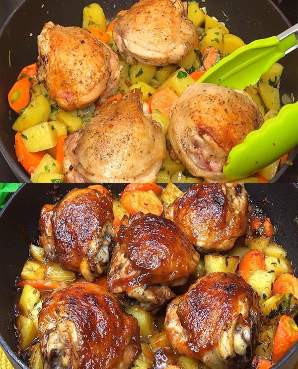 Skillet Chicken Dinner Recipe: It’s so good that I make it almost every day! Recipe for Skillet Chicken Dinner Recipe for Skillet Dinner It’s so good that I make it often. My family’s favorite recipe is this one. This recipe works with any amount of chicken; just adjust the oven’s cooking time. Make a tasty one-pan supper; chicken with carrots and potatoes in honey garlic sauce has never tasted better. This dish is so wonderful that you will adore it. I wish you luck in the kitchen!