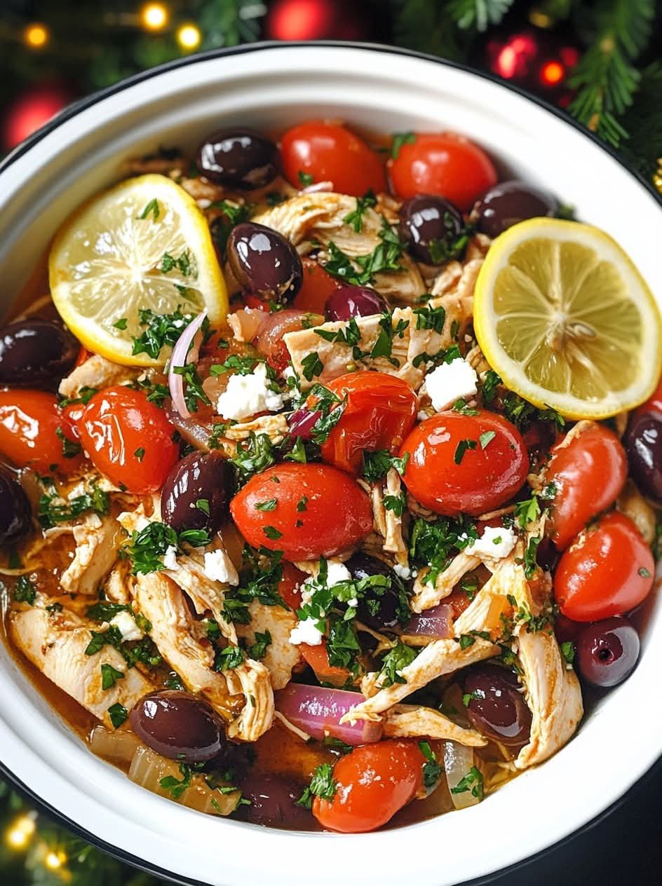 Slow-Cooked Mediterranean Lemon Garlic Greek Chicken with Olives and Herbs