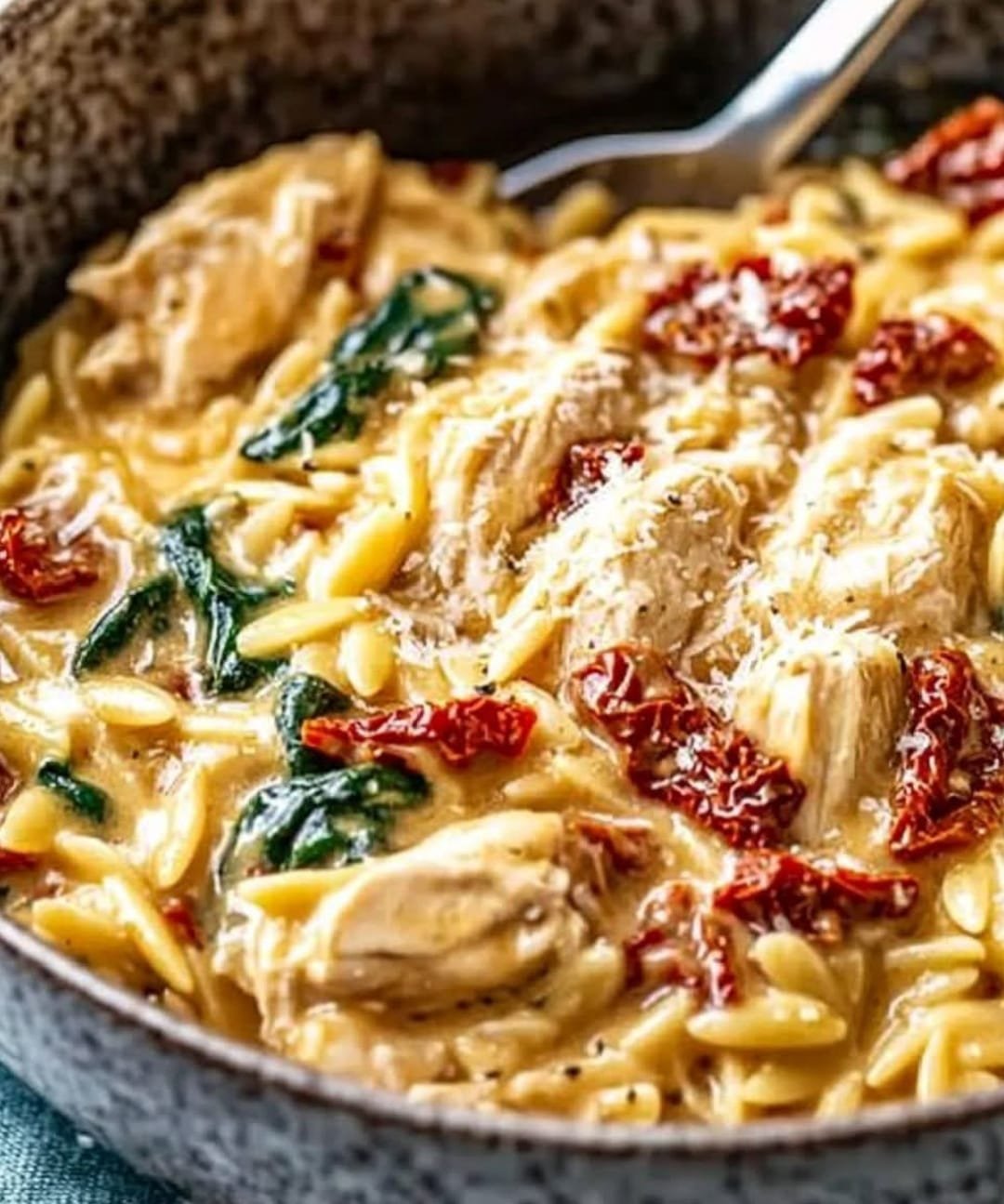 This Slow Cooker Creamy Tuscan Chicken Orzo is rich, flavorful, and incredibly easy—the perfect comfort meal with minimal effort. Enjoy!