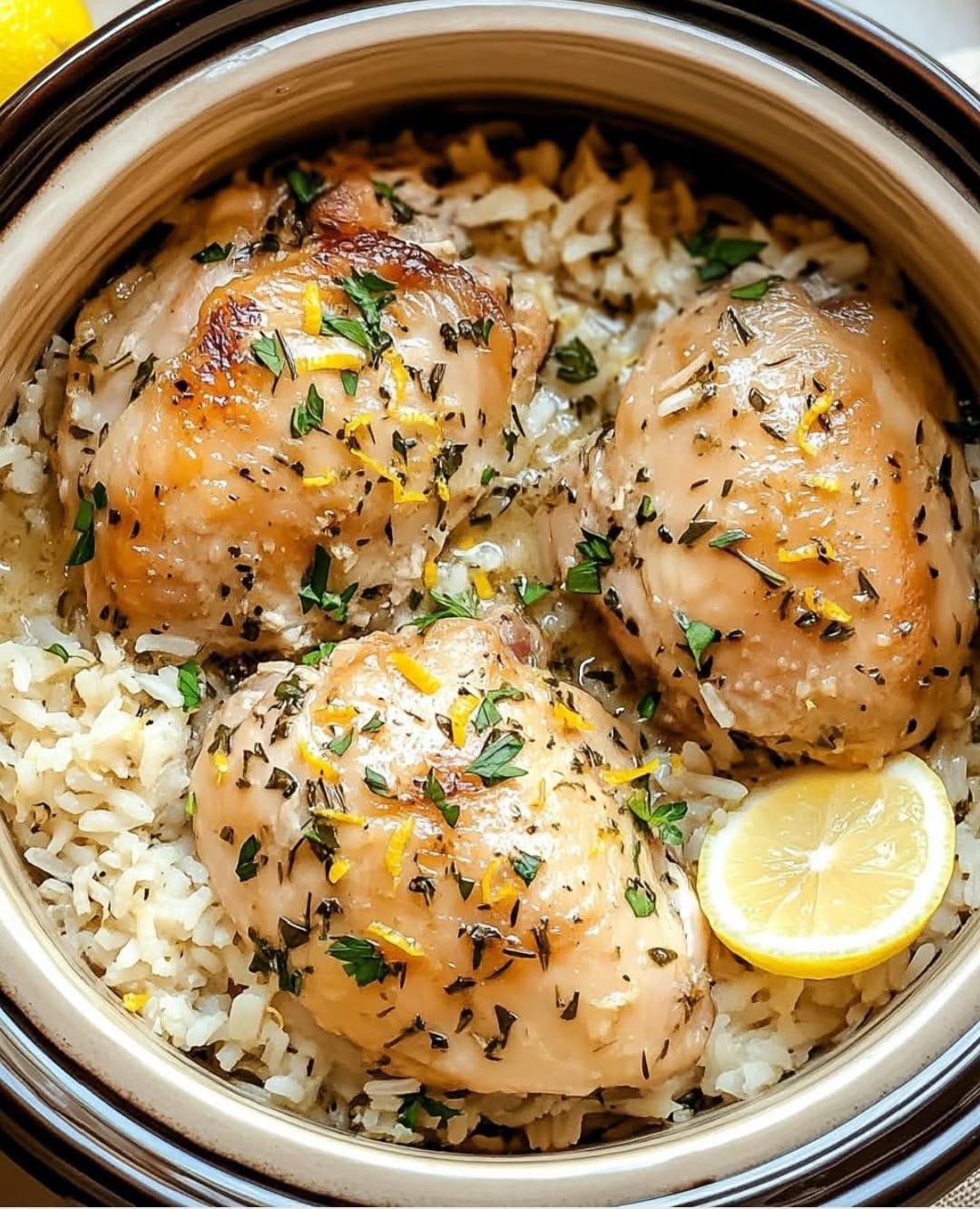 Slow Cooker Lemon Herb Chicken and Rice