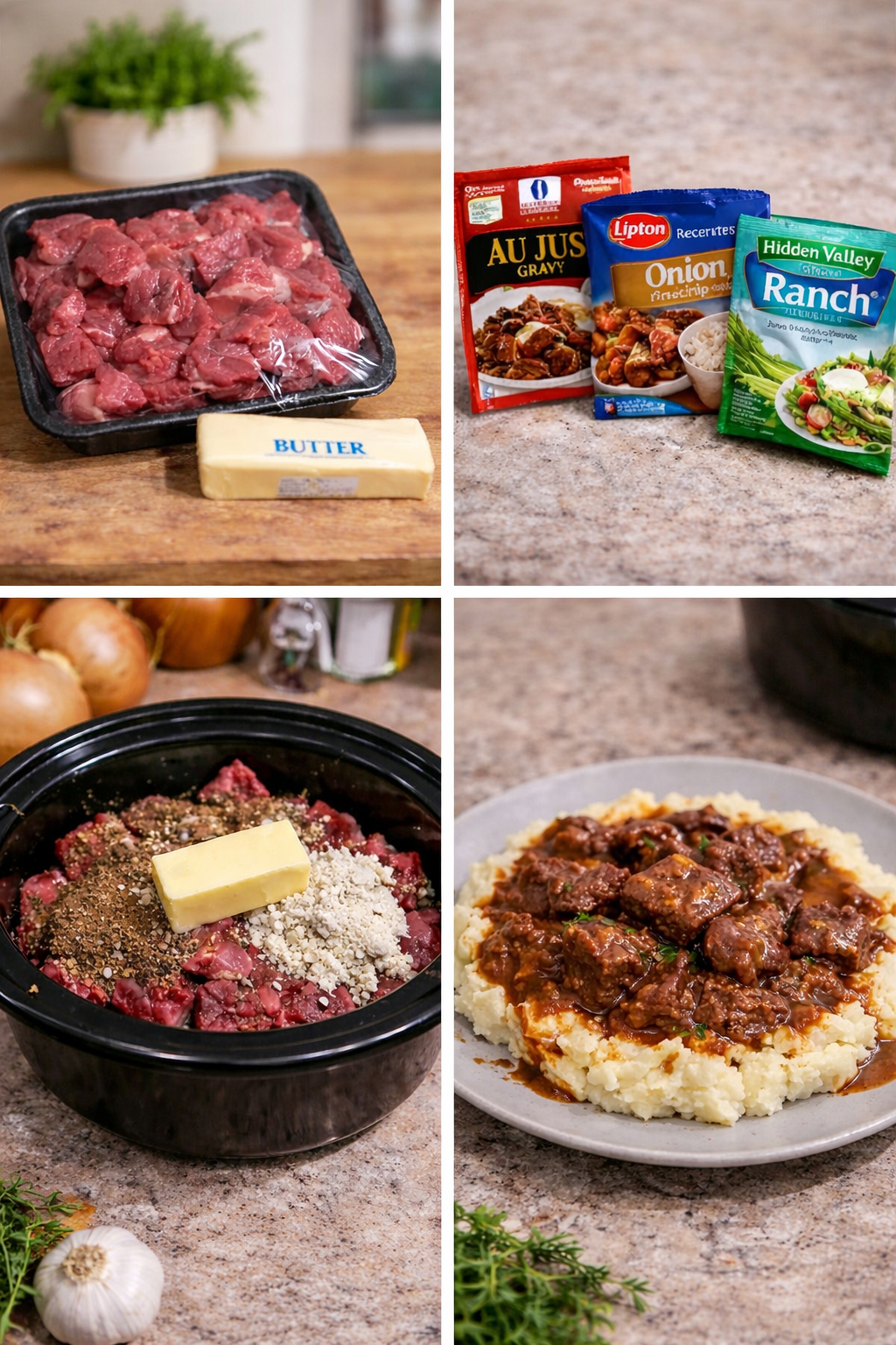 🥩🧈 Slow Cooker Mississippi Beef Tips & Gravy