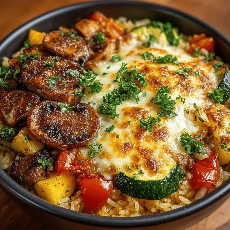 A hearty, comforting, and vegetarian casserole made with rice, seasonal vegetables, herbs, and a light tomato-cream sauce. Perfect for slow-cooking while you focus on other tasks — healthy, cozy, and Mediterranean-inspired.