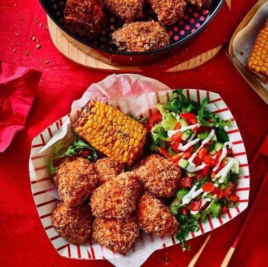 Have the bread as half of a Healthy Extra ‘b’ choice to make it free. The air fryer is perfect for cooking sweetcorn cobettes; just throw them in there and cook for 12–14 minutes, or until they’re soft and slightly burnt. Wrap them in foil to keep them warm while you prepare the nuggets. A 4.3-liter air fryer was utilized. You can feed more people with more of it if yours is larger.