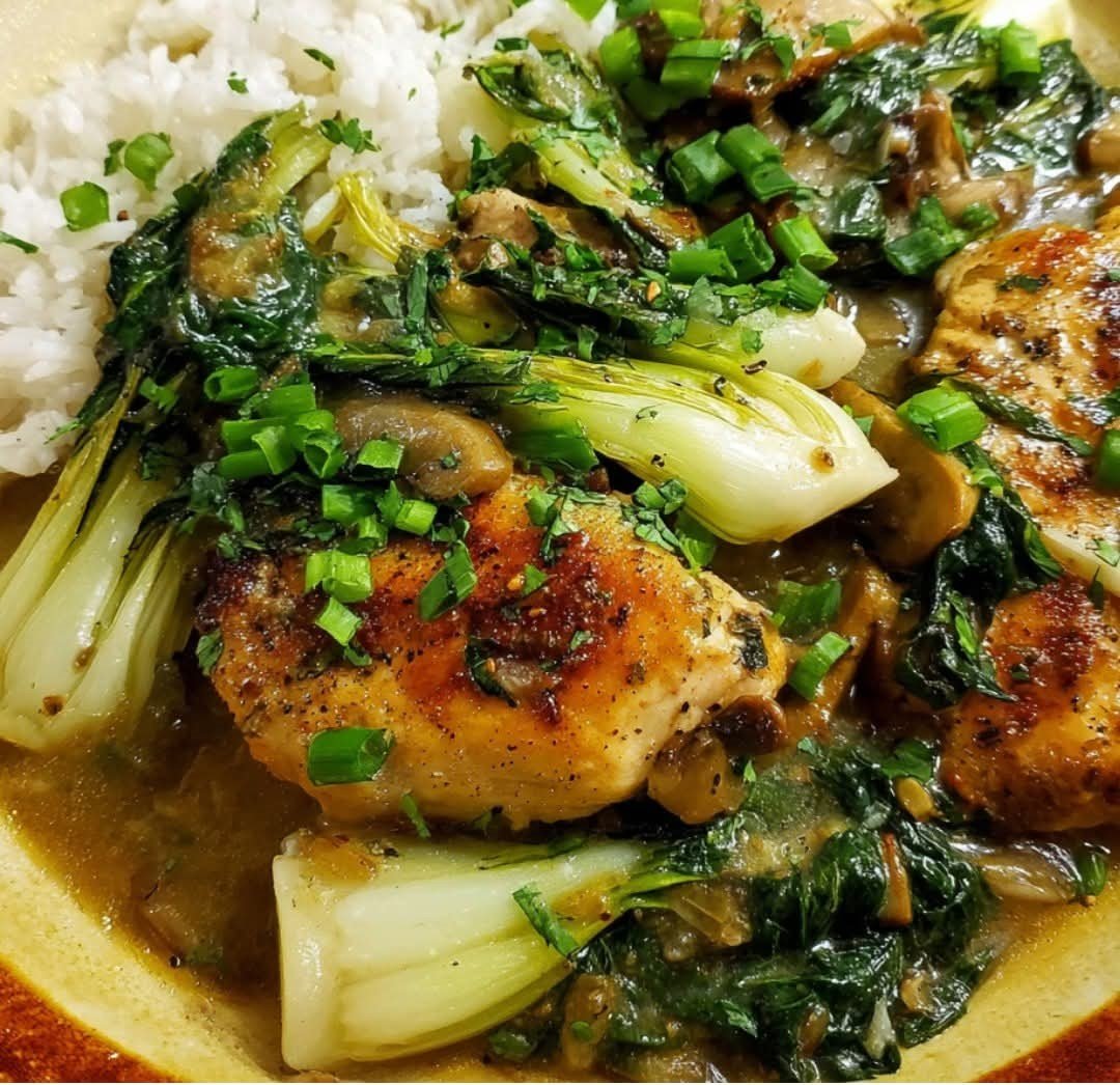 Smothered chicken with bok choy brings together comfort and balance in one pan. Tender chicken, savory gravy, and fresh greens create a meal that’s rich yet wholesome. It’s simple enough for weeknights and satisfying enough for guests. Serve warm over rice and enjoy every saucy bite.