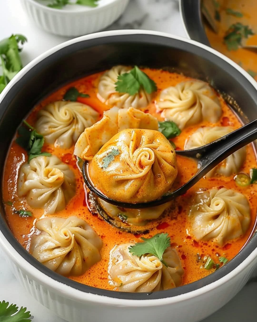 This dish combines the comforting nature of soup dumplings with the bold, creamy flavors of Thai red curry, creating a unique and delicious fusion meal!